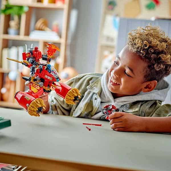 El juguete ninja combinado Moto-Meca de la Tormenta de Kai (71830) ofrece a los niños y las niñas a partir de 7 años la oportunidad de recrear las emocionantes escenas de la temporada 3 de la serie para televisión Ninjago®: El renacer de los dragones. Los niños pueden jugar con el gran juguete de acción antes de separarlo en 2 vehículos más pequeños: el meca de Kai (con cabeza, brazos y piernas articulados, cabina y una gran Espada de la Tormenta) y la moto voladora de Nya (con cabina, alas móviles y 2 cañones automáticos). Este juego de vehículos ninja viene con 3 minifiguras Ninjago: Kai armado con 2 catanas de cristal, Nya armada con 2 catanas doradas y un infame guerrero Dragónido con una espada. La gama LEGO® Ninjago de sets y juguetes ninja incluye dragones, vehículos y templos que permitirán a los fans vivir aventuras con sus héroes.