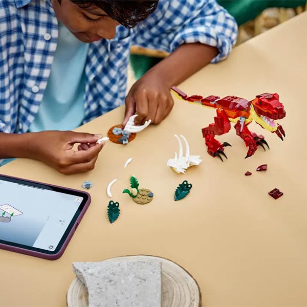 ¡Viaja atrás en el tiempo hasta la era prehistórica para vivir aventuras con 3 feroces dinosaurios! Sal a cazar con un temible Velocirraptor junto a un cráneo y una caja torácica de dinosaurio. Luego, conviértelo en un Stegosaurus que puede mover el cuello, la cabeza y las patas, o en un Pterosaurio que vuele por el cielo. ¿Qué vas a construir? Con este asombroso set “3 en 1”, la elección es tuya.